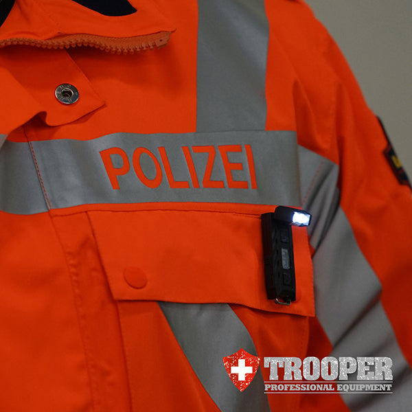 Der Renner bei Polizei, Sanität und Grenzwache: Die THUMB mit abgeknicktem Lampenkopf an der Brusttasche eingesteckt, flutet alles im Umkreis von einigen Metern mit starkem Licht - und lässt dennoch beide Hände frei. Aber man muss nicht ein Polizist sein, der im Dunkeln Ausweise überprüfen muss, um dieses Lämpchen zu brauchen. Im Auto oder beim Trekken oder Campen oder einfach überall, wo man unterwegs ist, leistet die THUMB tolle Dienste, da sie unglaublich klein ist, überall verstaut werden kann, im Notfall als Taschenlampe oder Anstecklicht benutzt und überall mit USB wiederaufgeladen werden kann.