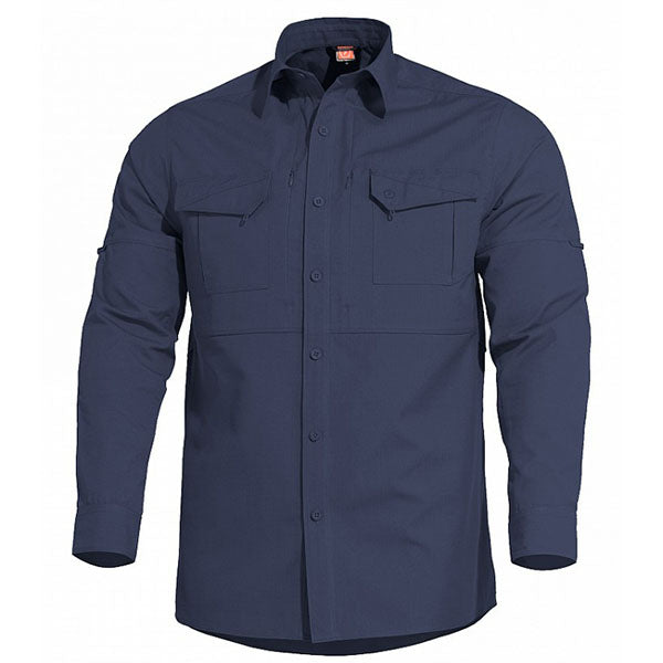 Das PLATO SHIRT von PENTAGON besteht aus einem schnelltrocknenden Polyester/Baumwolle-Mischgewebe von und ist bestens für den aktiven Weg zur Arbeit, im Dienst und warmen Temperaturen geeignet. Es handelt sich um ein taktisches Langarmshirt aus Teflon® beschichtetem PolyCotton Rip-Stop Gewebe mit zwei aufgesetzten Brust- und zwei verdeckten Reissverschlusstaschen.