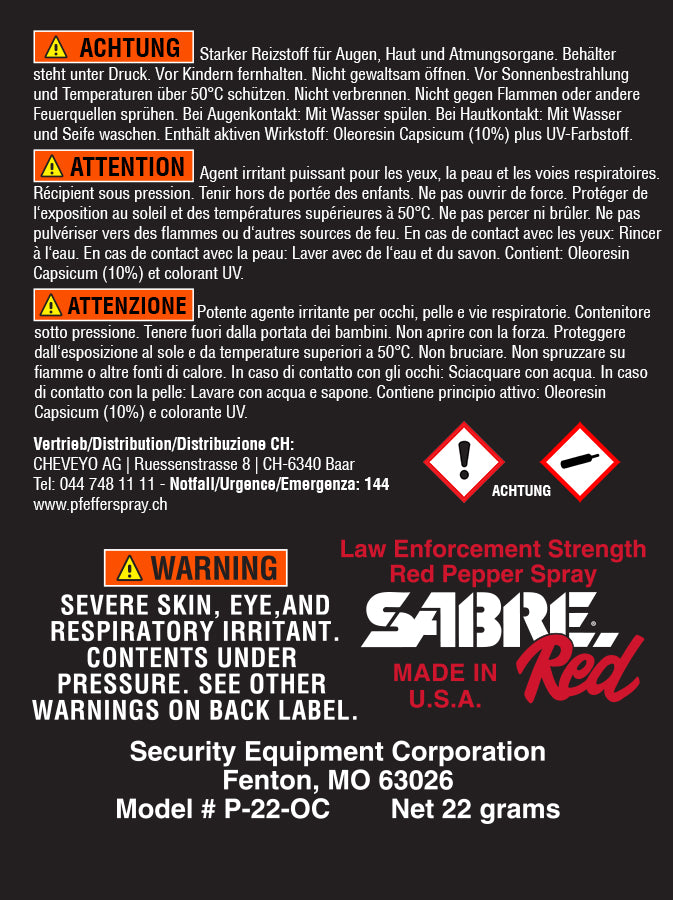 SABRE ist die Nr. 1 unter den Pfeffersprays weltweit und wird von zivilen Nutzern, wie auch von der Polizei weltweit eingesetzt, darunter durch das New York Police Departement NYPD, Chicago Police Departement wie auch von den U.S. Marshals.