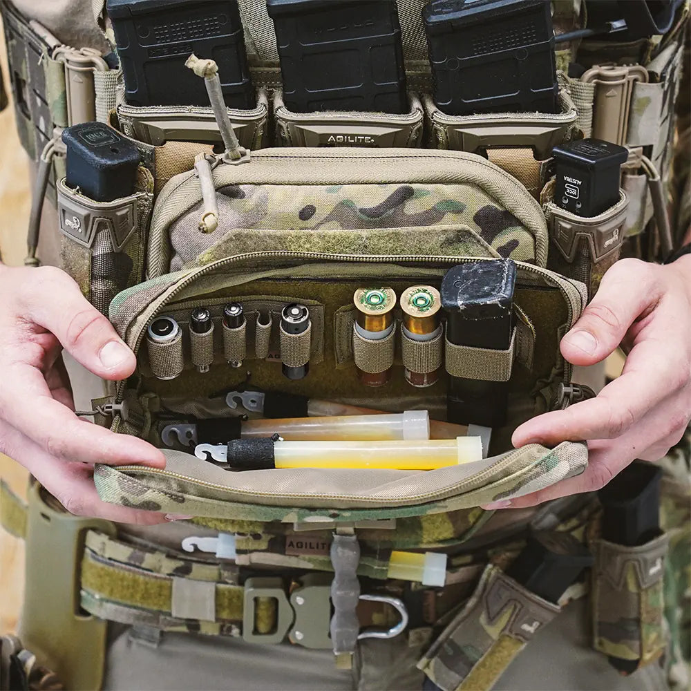 Der Rear Hanger von Agilite ist eine patentierte (pending) Tasche, die den ungenutzten Bereich am Rücken deiner Plate Carrier in flachen, selbst zugänglichen Stauraum verwandelt – stabil, enganliegend und ohne zu verhaken. Gleichzeitig wirkt er als Lendenwirbel-Stütze für mehr Komfort bei langem Tragen oder Sitzen (z. B. im Fahrzeug).