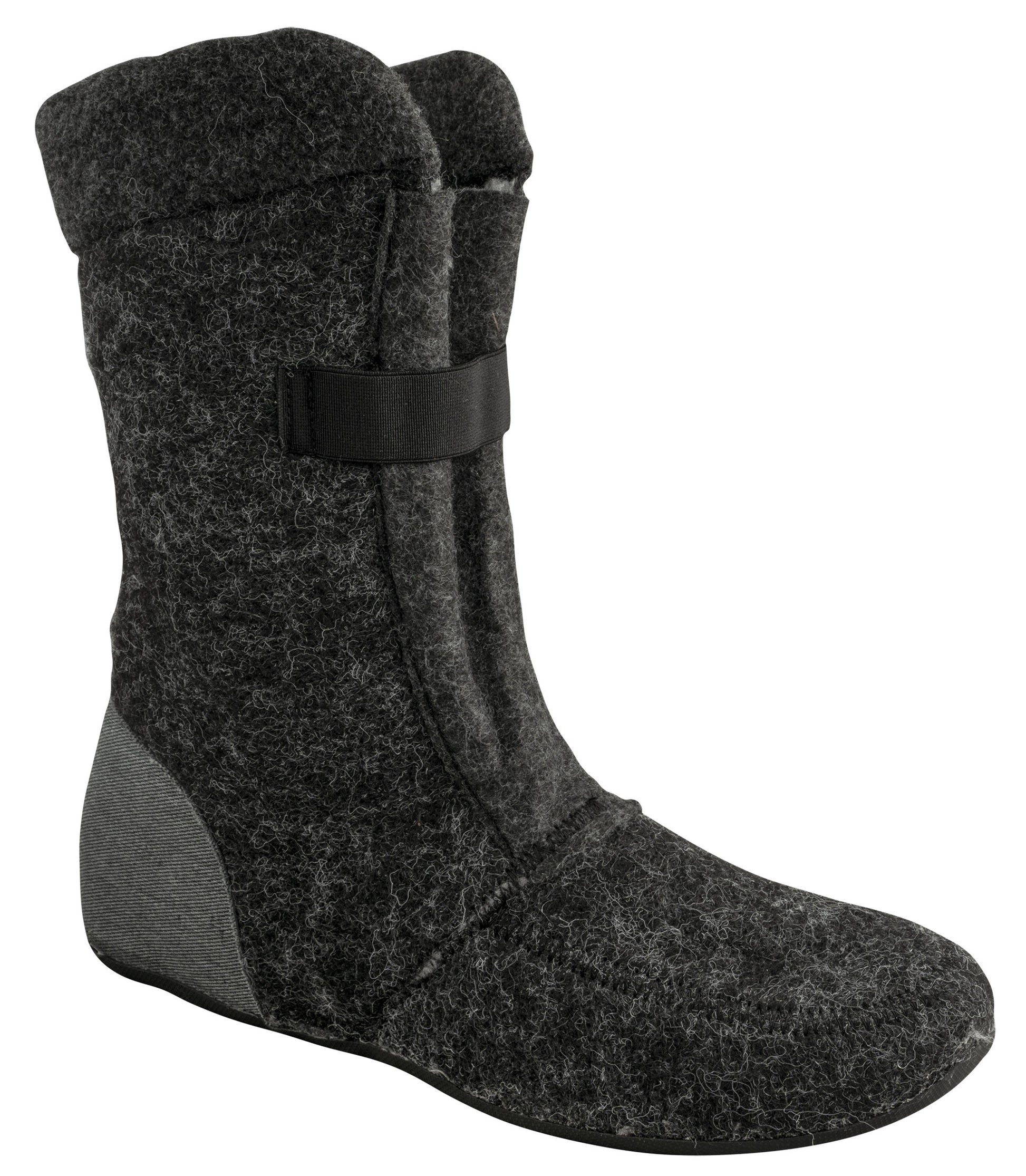 Ein besonderes Highlight ist der anpassbare Innenschuh. Während andere Stiefel einfache Schlupfschuhe nutzen, überzeugt dieser mit einer präzisen Passform und verstärktem Fersen- sowie Sohlenbereich. Das strapazierfähige Obermaterial kombiniert mit weichem Fleece-Innenfuttersorgt für Wärme und Komfort. Der Filzkragen am Schaft und ein Klettriemen über dem Schienbein ermöglichen eine individuelle Weitenregulierung.