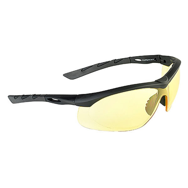 Hochwertige Schutzbrille von Swiss Eye in der Variante Lancer mit schwarzen Bügeln. Die Brille verfügt über flexible, gummierte Bügel. Die Gläser sind aus Splitterfreiem Polycarbonat gefertigt und zudem Kratz- und Beschlagresistent beschichtet. Zudem bieten die Gläser 100% UVA-, UVB- und UVC-Schutz bis 400 nm (Nanometer). Geliefert wird die Brille in einem Microfaserbeutel, der zusätzlich zu Reinigung der Gläser geeignet ist. Die Produktpalette aus dem Bereich Tactical bietet qualitativhochwertigen Augenschutz für besondere Herausforderungen. Dazu gehören der Einsatz im Schießsport, bei der Jagd, bei der behördlichen Anwendung etc. Seit Jahren wird das Swiss Eye Modell Raptor bereits von verschiedenen Sondereinsatzkommandos der Polizei sowie von Angehörigen der deutschen Bundeswehr getragen